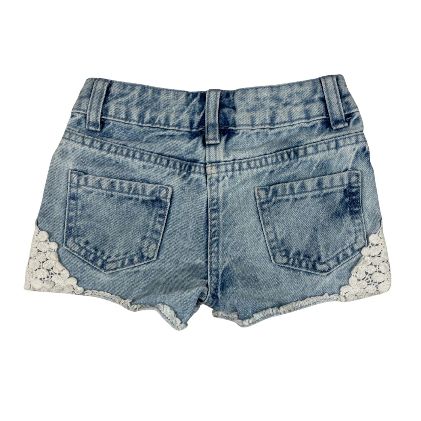 Hübsche Jeansshorts mit weißen Spitzenakzenten für Mädchen.