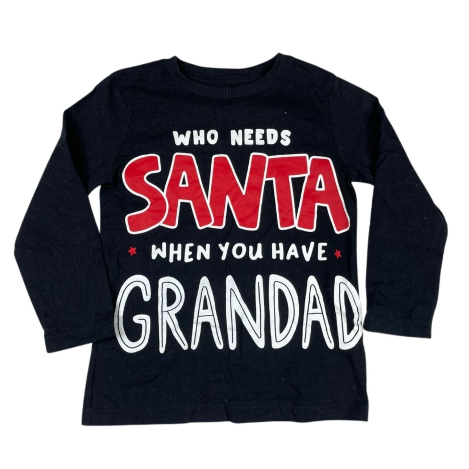 Schwarzes Langarmshirt mit witzigem Weihnachts-Print „Who needs Santa when you have Grandad“ aus weicher Baumwolle.