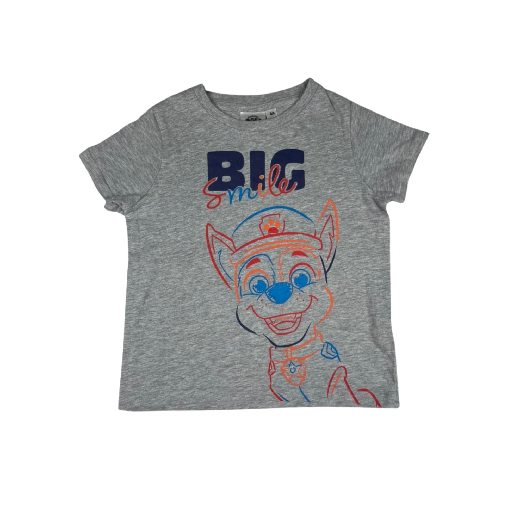 Bequemes graues T-Shirt mit großem Paw-Patrol Print BIG Smile – weich und alltagstauglich. Lizenzprodukt von Kiabi / Nickelodeon.
